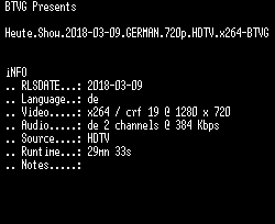 | FiLENAME: | Heute.Show.2018-03-09.GERMAN.720p.HDTV.x264-BTVG.mkv |
