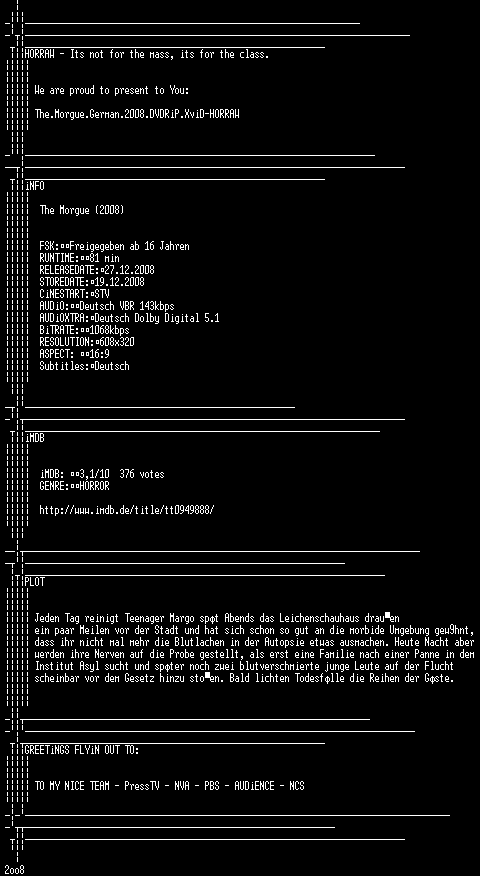 | FiLENAME: | The Morgue (2008) [GER WS DVD].avi |
