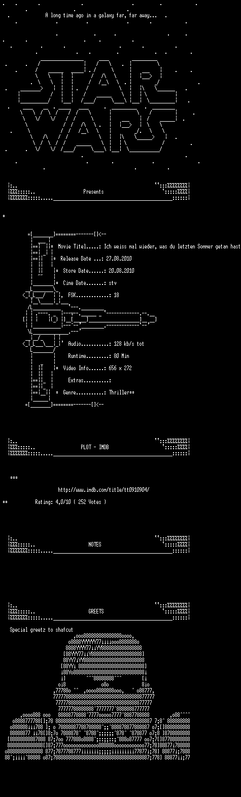 | FiLENAME: | Ich.weiss.mal.wieder.was.du.letzten.Sommer.getan.hast.German.2008.DVDRip.XviD-StarWars.avi |