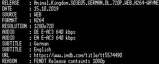 | FiLENAME: | Animal.Kingdom.S03E05.GERMAN.DL.720P.WEB.H264-WAYNE.mkv |