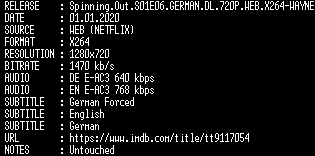 | FiLENAME: | Spinning.Out.S01E06.GERMAN.DL.720P.WEB.X264-WAYNE.mkv |