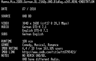 | FiLENAME: | Mamma.Mia.2008.German.DL.2160p.UHD.BluRay.x265.REAL-ENDSTATiON.mkv |