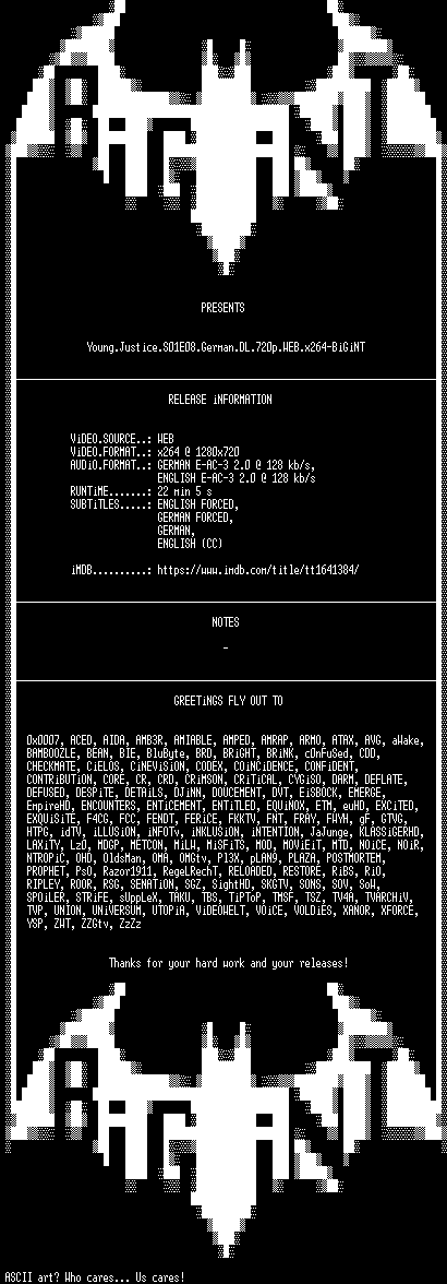 | FiLENAME: | Young.Justice.S01E08.German.DL.720p.WEB.x264-BiGiNT.mkv |