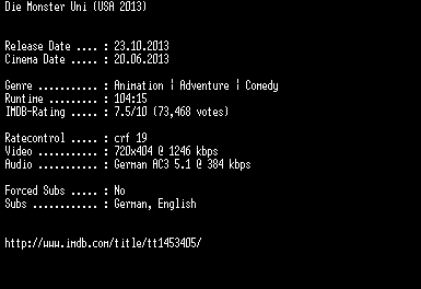 | FiLENAME: | Die.Monster.Uni.German.BDRiP.x264-EXQUiSiTE.mkv |