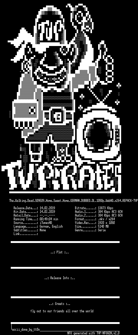 | FiLENAME: | The.Walking.Dead.S09E09.Home.Sweet.Home.GERMAN.DUBBED.DL.1080p.WebHD.x264.REPACK-TVP.mkv |