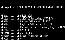 | FiLENAME: | Creeped.Out.S01E05.GERMAN.DL.720p.WEB.x264-EiSBOCK.mkv |