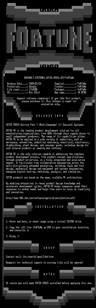 | FiLENAME: | Dassault Systemes CATIA V5 R19 SP3-FoRTuNe.iso |