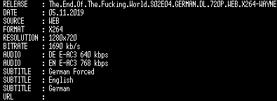 | FiLENAME: | The.End.Of.The.Fucking.World.S02E04.GERMAN.DL.720P.WEB.X264-WAYNE.mkv |