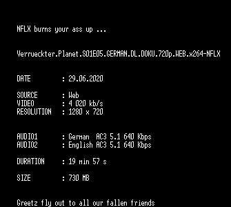 | FiLENAME: | Verrueckter.Planet.S01E05.GERMAN.DL.DOKU.720p.WEB.x264-NFLX.mkv |