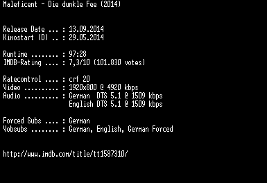 | FiLENAME: | Maleficent.Die.dunkle.Fee.UNCUT.GERMAN.DL.1080p.BluRay.x264-EXQUiSiTE.mkv |