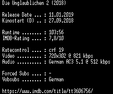 | FiLENAME: | Die.Unglaublichen.2.German.2018.AC3.BDRip.x264-COiNCiDENCE.mkv |