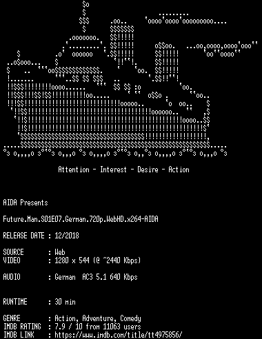 | FiLENAME: | Future.Man.S01E07.German.720p.WebHD.x264-AIDA.mkv |
