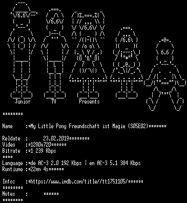 | FiLENAME: | My.Little.Pony.Freundschaft.ist.Magie.S05E02.German.DL.720p.WEBHD.x264-JuniorTV.mkv |