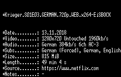 | FiLENAME: | Krieger.S01E03.GERMAN.720p.WEB.x264-EiSBOCK.mkv |