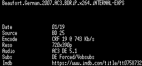 | FiLENAME: | Beaufort.German.2007.AC3.BDRiP.x264.iNTERNAL-EXPS.mkv |