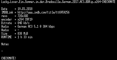 | FiLENAME: | Lucky.Loser.Ein.Sommer.in.der.Bredouille.German.2017.AC3.BDRip.x264-CHECKMATE.mkv |