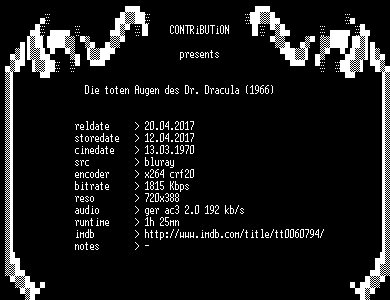 | FiLENAME: | Die.toten.Augen.des.Dr.Dracula.1966.German.BDRip.x264-CONTRiBUTiON.mkv |