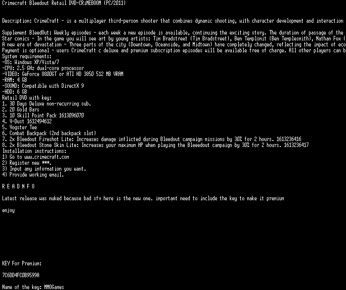 | FiLENAME: | Crimecraft.BleedOut.Spring.2011.Release.READ.NFO-CRiMEBOOM.rar |