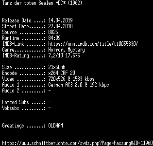 | FiLENAME: | Tanz.der.toten.Seelen.German.1962.AC3.BDRiP.x264.iNTERNAL-SPiCY.mkv |