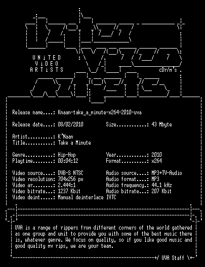 | FiLENAME: | Knaan-take_a_minute-x264-2010-uva.mkv |