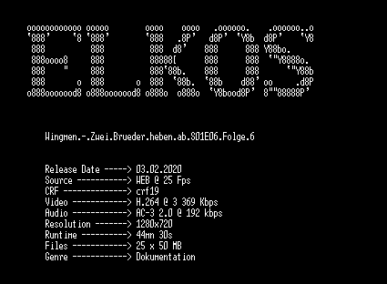 | FiLENAME: | Wingmen.-.Zwei.Brueder.heben.ab.S01E06.Folge.6.GERMAN.DOKU.720p.WebHD.x264-ELKOS.mkv |