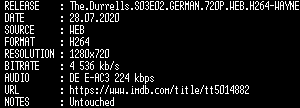 | FiLENAME: | The.Durrells.S03E02.GERMAN.720P.WEB.H264-WAYNE.mkv |