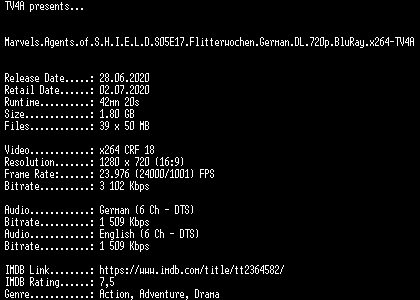 | FiLENAME: | Marvels.Agents.of.S.H.I.E.L.D.S05E17.Flitterwochen.German.DL.720p.BluRay.x264-TV4A.mkv |
