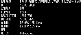| FiLENAME: | PEN15.S01E07.GERMAN.DL.720P.WEB.X264-WAYNE.mkv |