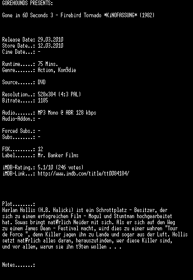 | FiLENAME: | Gone.In.60.Seconds.3.Firebird.Tornado.KiNOFASSUNG.German.1982.DVDRiP.XViD-GOREHOUNDS.avi |