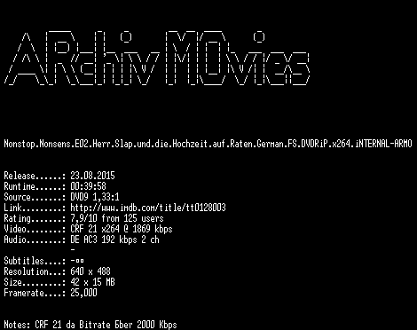 | FiLENAME: | Nonstop.Nonsens.E02.Herr.Slap.und.die.Hochzeit.auf.Raten.German.FS.DVDRiP.x264.iNTERNAL-ARMO.mkv |