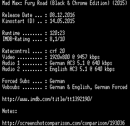 | FiLENAME: | Mad.Max.Fury.Road.Black.and.Chrome.Edition.2015.German.DL.1080p.BluRay.x264-COiNCiDENCE.mkv |