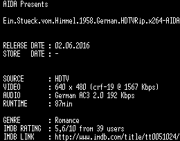 | FiLENAME: | Ein.Stueck.vom.Himmel.1958.German.HDTVRip.x264-AIDA.mkv |