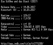 | FiLENAME: | Die.Schoene.und.das.Biest.German.2017.AC3.BDRip.x264-COiNCiDENCE.mkv |