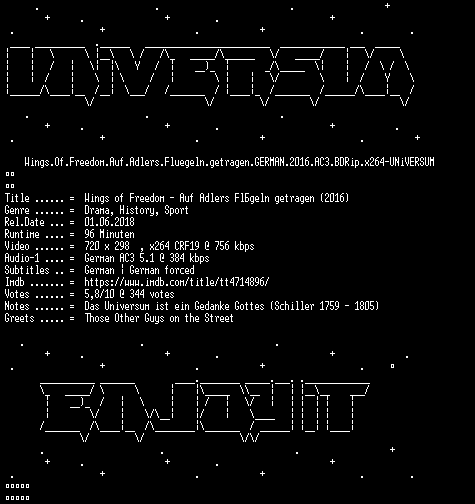 | FiLENAME: | Wings.Of.Freedom.Auf.Adlers.Fluegeln.getragen.GERMAN.2016.AC3.BDRip.x264-UNiVERSUM.mkv |