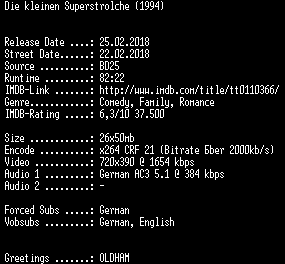 | FiLENAME: | Die.kleinen.Superstrolche.German.REMASTERED.1994.AC3.BDRip.x264-SPiCY.mkv |
