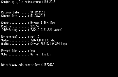 | FiLENAME: | Conjuring.Die.Heimsuchung.German.BDRiP.x264-EXQUiSiTE.mkv |