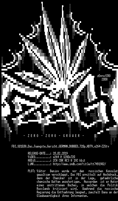 | FiLENAME: | FBI.S01E08.Das.Juengste.Gericht.GERMAN.DUBBED.720p.HDTV.x264-ZZGtv.mkv |