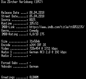 | FiLENAME: | Die.Zuercher.Verlobung.German.REMASTERED.1957.AC3.BDRip.x264-SPiCY.mkv |