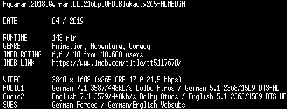 | FiLENAME: | Aquaman.2018.German.DL.2160p.UHD.BluRay.x265-HDMEDiA.mkv |