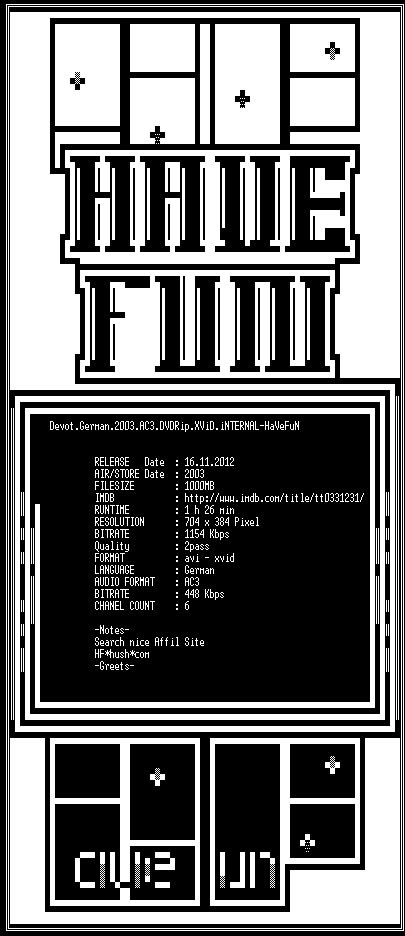 | FiLENAME: | Devot.German.2003.AC3.DVDRip.XViD.iNTERNAL-HaVeFuN.avi |