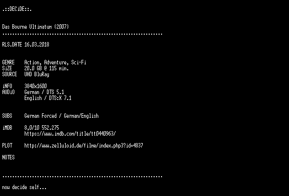 | FiLENAME: | Das.Bourne.Ultimatum.2007.GERMAN.DL.2160p.UHD.BluRay.x265-DECiDE.mkv |