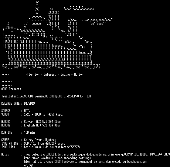 | FiLENAME: | True.Detective.S03E01.German.DL.1080p.HDTV.x264.PROPER-AIDA.mkv |