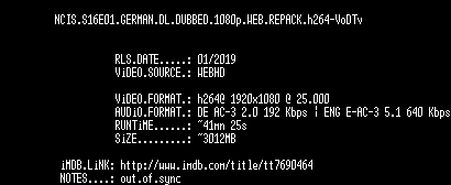 | FiLENAME: | NCIS.S16E01.GERMAN.DL.DUBBED.1080p.WEB.REPACK.h264-VoDTv.mkv |