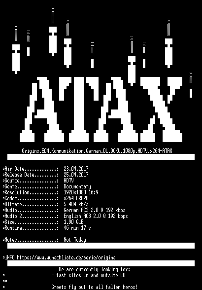 | FiLENAME: | Origins.E04.Kommunikation.German.DL.DOKU.1080p.HDTV.x264-ATAX.mkv |