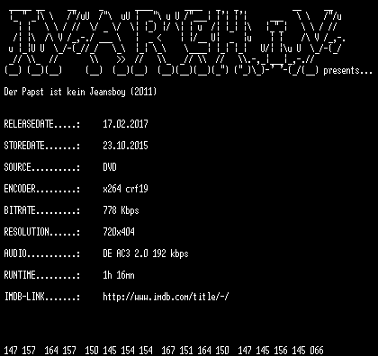 | FiLENAME: | Der.Papst.ist.kein.Jeansboy.2011.German.DVDRip.x264-TVARCHiV.mkv |