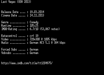 | FiLENAME: | Last.Vegas.German.BDRiP.x264-EXQUiSiTE.mkv |