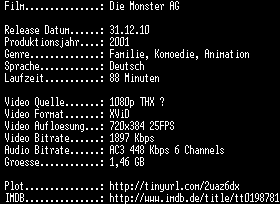 | FiLENAME: | Die.Monster.AG.2001.GERMAN.AC3.HDRiP.XViD-CAOS.avi |
