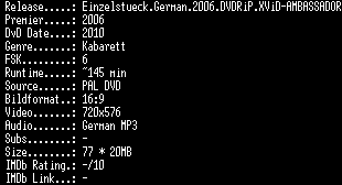 | FiLENAME: | Einzelstueck.German.2006.DVDRiP.XViD-AMBASSADOR.avi |