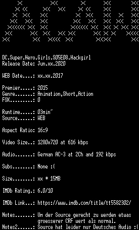 | FiLENAME: | DC.Super.Hero.Girls.S05E08.Hackgirl.German.720p.WebHD.x264-ACAW.mkv |