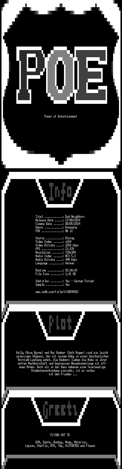 | FiLENAME: | Bad.Neighbors.2014.BDRip.AC3.German.x264-POE.mkv |